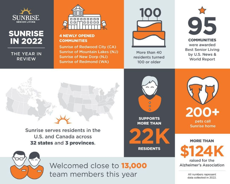 During my time at Sunrise Senior Living, I led organic social media operations for a 200K+ follower base on Facebook, Instagram, LinkedIn, and Twitter, and managed content procurement for over 250+ senior living facilities in the US and Canada.